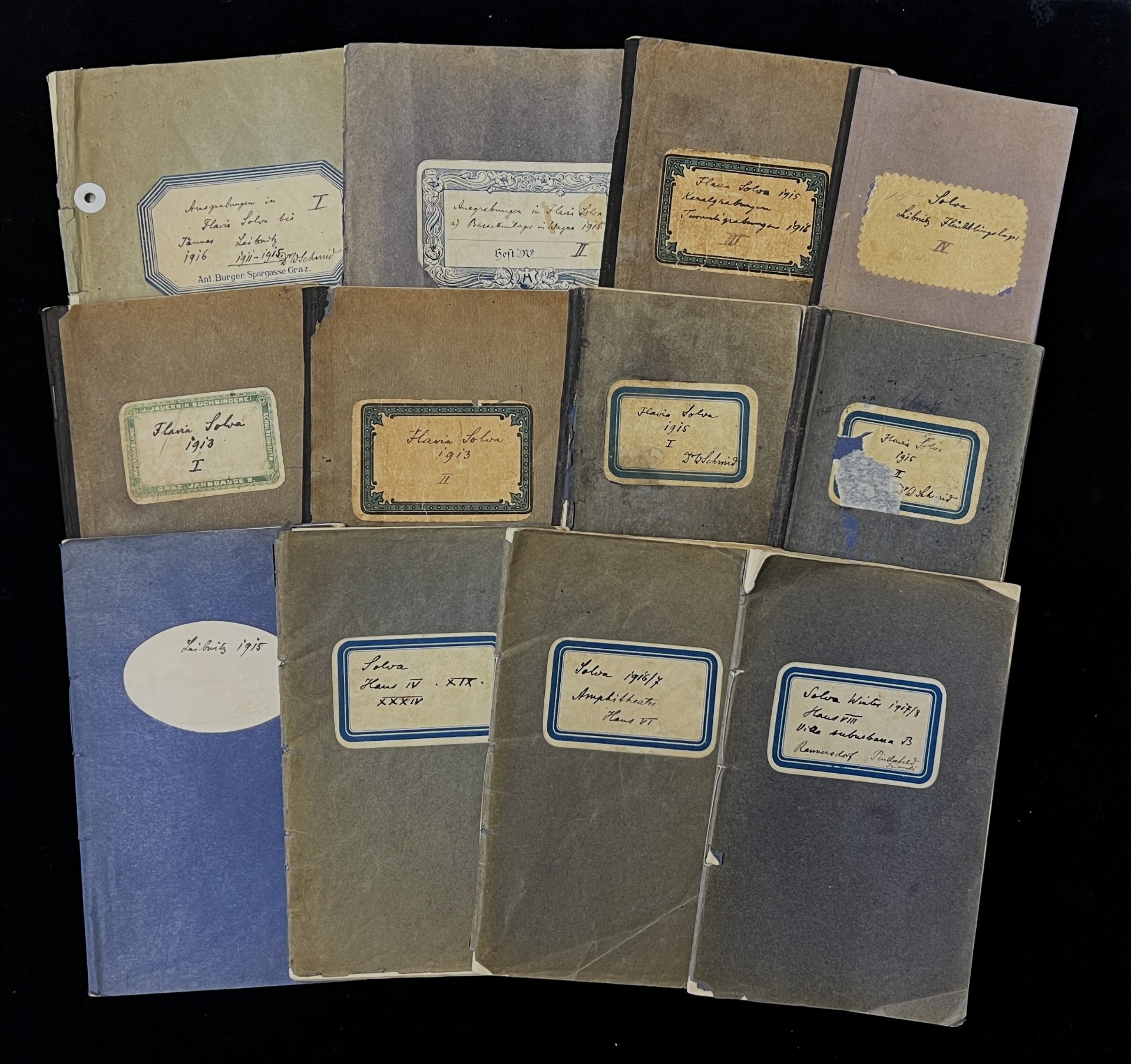 In den Jahren 1911 bis 1918, also kurz vor Ausbruch und während des Ersten Weltkriegs, fanden umfangreiche archäologische Grabungen in Flavia Solva statt. Geleitet wurden sie von dem 1912 zum „Landesarchäologen“ und Leiter der prähistorischen Sammlung und des Antikenkabinetts am Joanneum in Graz ernannten Walter Schmid, in dessen Nachlass sich insgesamt zwölf Notizbücher erhalten haben, in denen er die Ergebnisse seiner Untersuchungen in Flavia Solva sehr ausführlich und detailreich beschrieben hat. Da Schmid Grabungsberichte meist nur in kürzeren Artikeln in Fachzeitschriften oder Tageszeitungen veröffentlichte, jedoch keine umfassenderen wissenschaftlichen Publikationen seiner Forschungsergebnisse vorlegte, kommt diesen als eine Art Grabungstagebüchern verfassten Notizheften erhöhte Bedeutung zu. Denn Schmids im Auftrag des k. k. Österreichischen Archäologischen Instituts zu Beginn mit Hilfe von Sträflingen, ab 1915 dann von serbischen, russischen und zuletzt auch italienischen Kriegsgefangenen durchgeführte großflächige Grabungen stellen bei allen – gewiss auch der damaligen Zeit und den besonderen Umständen geschuldeten – Mängeln bis heute die Grundlage unseres Wissens über den Stadtplan, die Grundrissgestaltung der regelmäßig angelegten Häuserblöcke und den Verlauf der Straßen sowie die Gesamtausdehnung Flavia Solvas dar. Nicht zuletzt konnten durch die von Schmid geleiteten umfangreichen Grabungen aber auch die z. T. sehr reiche Ausstattung einzelner Gebäude mit Fußbodenheizungen, Mosaiken und Wandmalereien und der damit verbundene hohe Lebensstandard zumindest eines Teils der Bewohner der einzigen antiken Stadt auf dem Gebiet der heutigen Steiermark nachgewiesen werden.